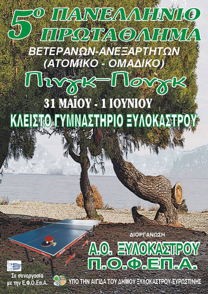 5ο Πανελλήνιο Πρωτάθλημα Ping-Pong Βετεράνων-Ανεξάρτητων (Ατομικό-Ομαδικό) στο Ξυλόκαστρο