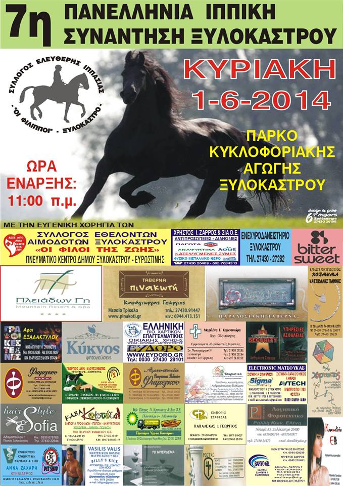Blogs-News στο Ξυλόκαστρο 7η Ιππική Συνάντηση Ξυλοκάστρου 01/06/2014 Posted by admin 26 Μαΐου 2014 On 26 Μαΐου 2014 7η Πανελλήνια Ιππική Συνάντηση Ξυλοκάστρου 01/06/2014